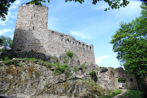 Von der 18 m hohen Burg Bernstein auf einer Höher von 562 m über dem Meeresspiegel genießt man eine wunderbare Aussicht auf das Vogesenpanorama und die Rheinebene.
